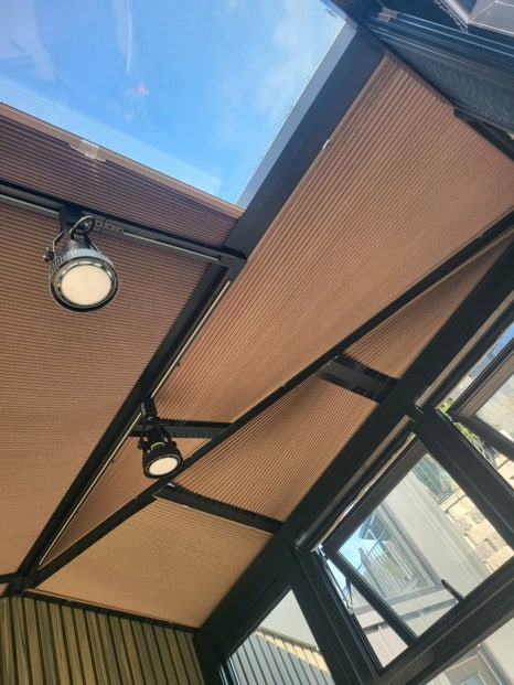 실링팬과 레일 조명 그리고 내부 썬바이져를 사용해서